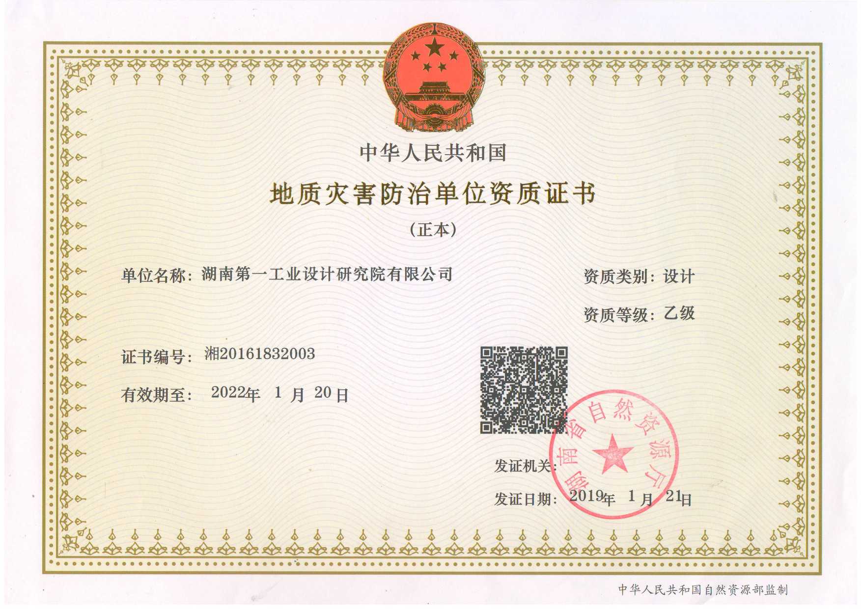地質災害防治單位資質證書